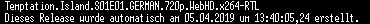 | FiLENAME: | Temptation.Island.S01E01.GERMAN.720p.WebHD.x264-RTL.mkv |