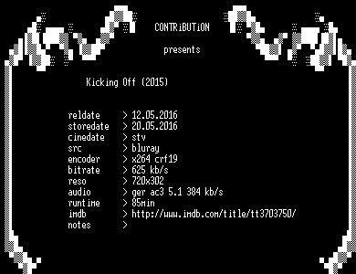 | FiLENAME: | Kicking.Off.Alles.tanzt.nach.meiner.Pfeife.2015.German.BDRip.x264-CONTRiBUTiON.mkv |
