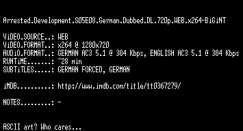 | FiLENAME: | Arrested.Development.S05E08.German.Dubbed.DL.720p.WEB.x264-BiGiNT.mkv |