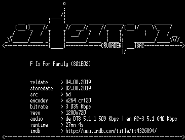 | FiLENAME: | F.Is.For.Family.S01E02.German.DL.720p.BluRay.x264-iNTENTiON.mkv |