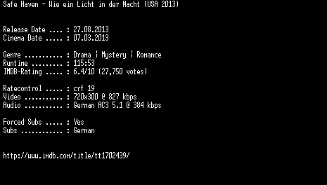 | FiLENAME: | Safe.Haven.Wie.ein.Licht.in.der.Nacht.German.BDRiP.x264-EXQUiSiTE.mkv |