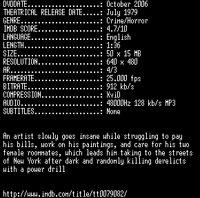 | FiLENAME: | The.Driller.Killer.1979.DVDRiP.XViD-RPS.avi |