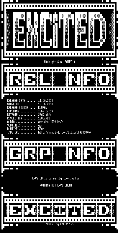 | FiLENAME: | Midnight.Sun.S01E01.German.720p.BluRay.x264-EXCiTED.mkv |