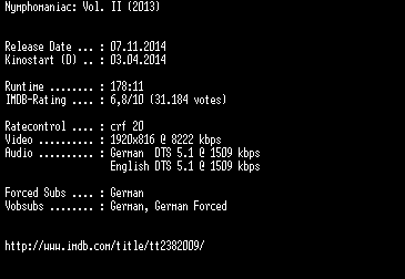 | FiLENAME: | Nymphomaniac.Vol.II.Directors.Cut.German.DL.1080p.BluRay.x264-EXQUiSiTE.mkv |