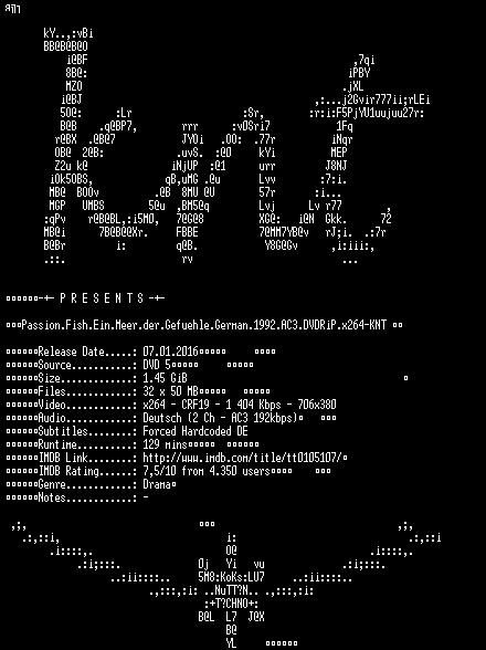 | FiLENAME: | Passion.Fish.Ein.Meer.der.Gefuehle.German.1992.AC3.DVDRiP.x264-KNT.mkv |
