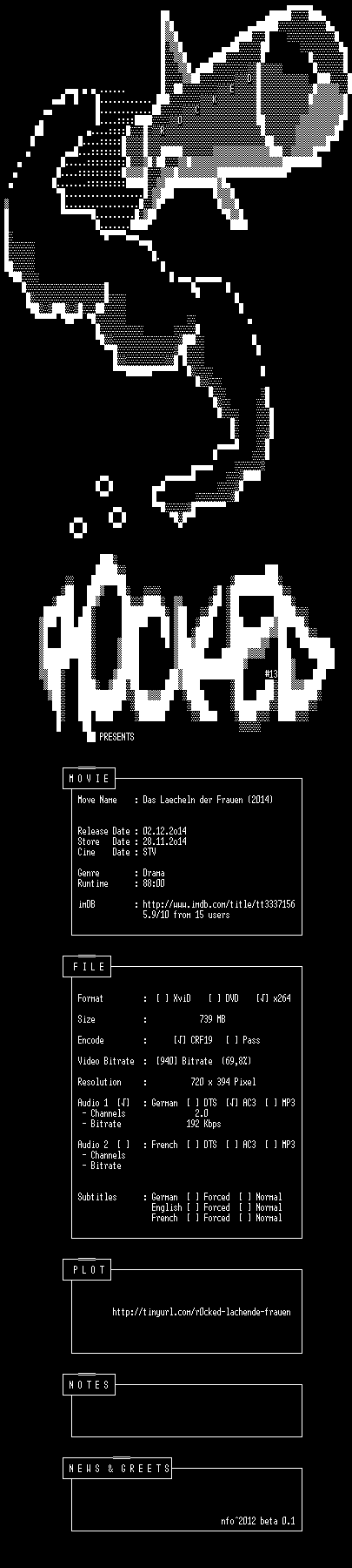 | FiLENAME: | Das.Laecheln.der.Frauen.German.2014.DVDRiP.x264-R0CKED.mkv |