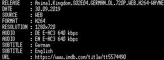 | FiLENAME: | Animal.Kingdom.S02E04.GERMAN.DL.720P.WEB.H264-WAYNE.mkv |
