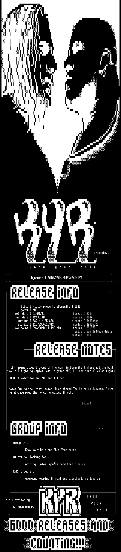 | FiLENAME: | Dynamite.2010.720p.HDTV.x264-KYR.mkv |