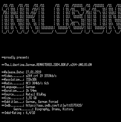 | FiLENAME: | The.Libertine.German.REMASTERED.2004.BDRiP.x264-iNKLUSiON.mkv |