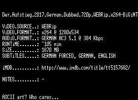 | FiLENAME: | Der.Aufstieg.2017.German.Dubbed.720p.WEBRip.x264-BiGiNT.mkv |