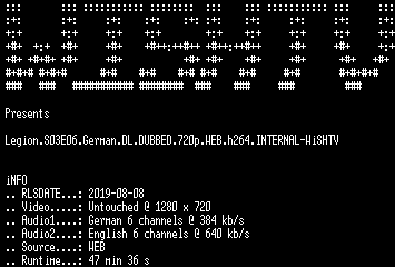 | FiLENAME: | Legion.S03E06.German.DL.DUBBED.720p.WEB.h264.INTERNAL-WiSHTV.mkv |