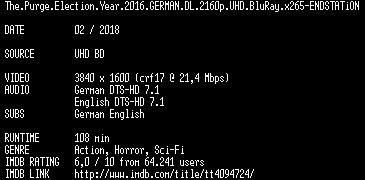 | FiLENAME: | The.Purge.Election.Year.2016.GERMAN.DL.2160p.UHD.BluRay.x265-ENDSTATiON.mkv |