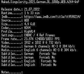 | FiLENAME: | Naked.Singularity.2021.German.DL.1080p.WEB.h264-WvF.mkv |