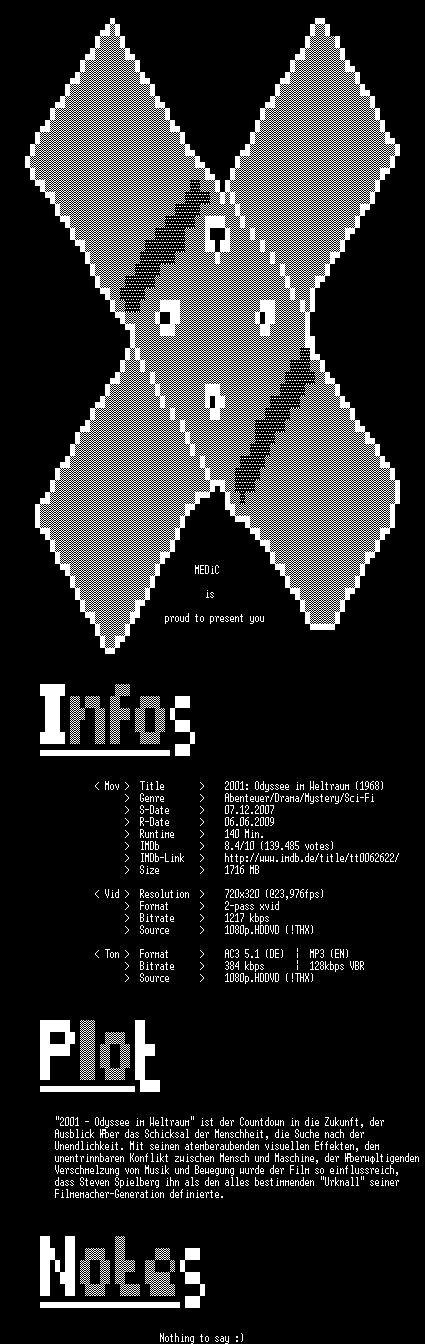 | FiLENAME: | ZZZ.2001.Odyssee.im.Weltraum.1968.German.DL.HDRip.XviD-MEDiC.avi |