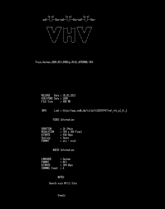 | FiLENAME: | Train.German.2008.AC3.DVDRip.XViD.iNTERNAL-VhV.avi |