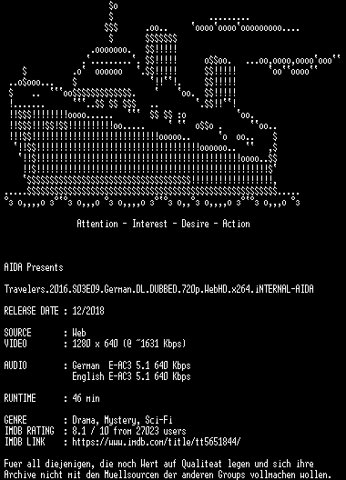 | FiLENAME: | Travelers.2016.S03E09.German.DL.DUBBED.720p.WebHD.x264.iNTERNAL-AIDA.mkv |