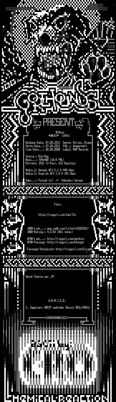 | FiLENAME: | McBain.UNCUT.REMASTERED.GERMAN.1991.DL.AC3.BDRiP.XViD-GOREHOUNDS.avi |