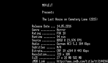 | FiLENAME: | The.Last.House.on.Cemetery.Lane.German.2015.AC3.BDRip.x264-MOViEiT.mkv |