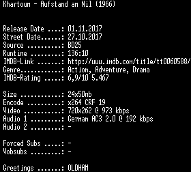 | FiLENAME: | Khartoum.Aufstand.am.Nil.German.REMASTERED.1966.AC3.BDRip.x264-SPiCY.mkv |