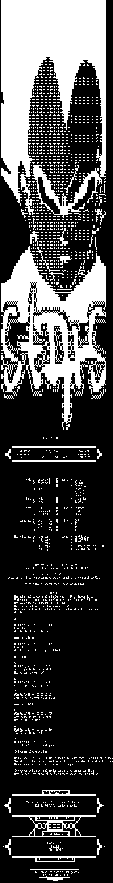 | FiLENAME: | Fairy.Tail.E025.Im.Regen.Erbluehende.Blumen.German.2009.ANiME.DL.1080p.BluRay.PROPER.READNFO.x264-STARS.mkv |