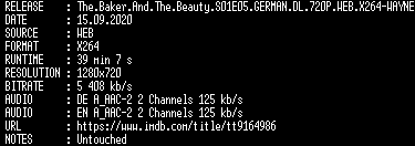 | FiLENAME: | The.Baker.And.The.Beauty.S01E05.GERMAN.DL.720P.WEB.X264-WAYNE.mkv |