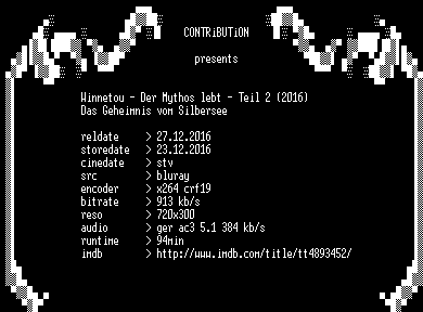 | FiLENAME: | Winnetou.Der.Mythos.lebt.Teil.2.2016.German.BDRip.x264-CONTRiBUTiON.mkv |