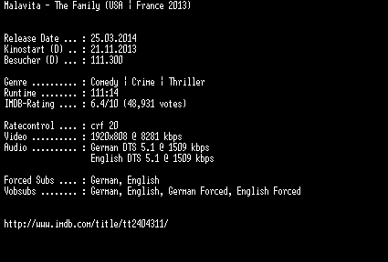 | FiLENAME: | Malavita.The.Family.German.DL.1080p.BluRay.x264-EXQUiSiTE.mkv |