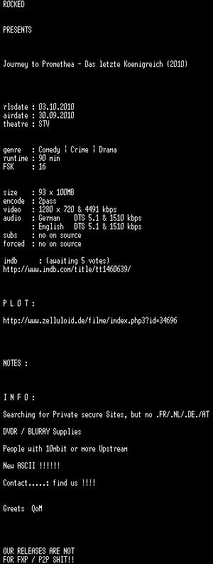 | FiLENAME: | Journey to Promethea (2010) [DL-dts 720p BD].mkv |