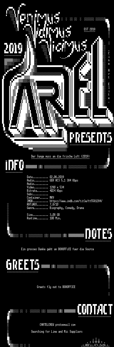 | FiLENAME: | Der.Junge.muss.an.die.frische.Luft.GERMAN.AC3.720p.WebHD.h264-CARTEL.mkv |