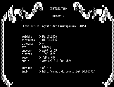 | FiLENAME: | Lavalantula.Angriff.der.Feuerspinnen.2015.German.BDRip.x264-CONTRiBUTiON.mkv |