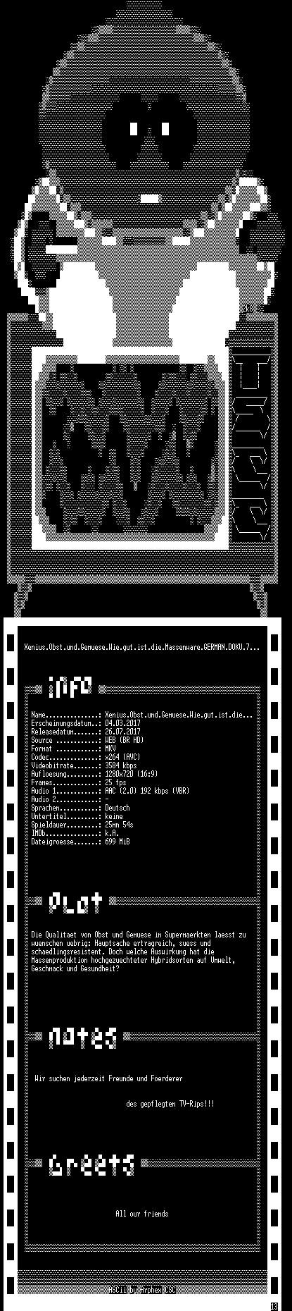 | FiLENAME: | Xenius.Obst.und.Gemuese.Wie.gut.ist.die.Massenware.GERMAN.DOKU.720p.WEBHD.x264-TSCC.mkv |