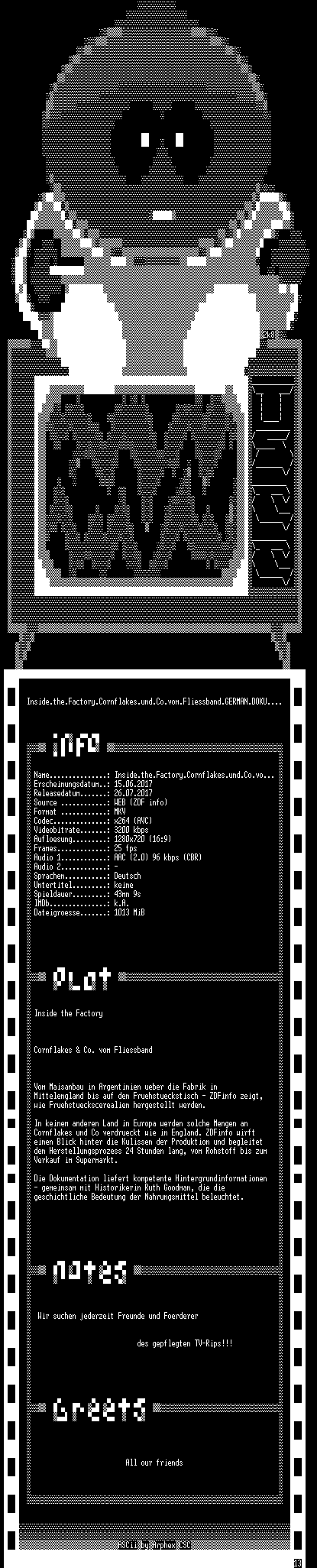 | FiLENAME: | Inside.the.Factory.Cornflakes.und.Co.vom.Fliessband.GERMAN.DOKU.720p.WEBHD.x264-TSCC.mkv |