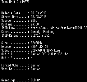| FiLENAME: | Teen.Wolf.2.German.REMASTERED.1987.AC3.BDRip.x264-SPiCY.mkv |