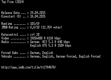 | FiLENAME: | Top.Five.German.DL.1080p.BluRay.x264-EXQUiSiTE.mkv |