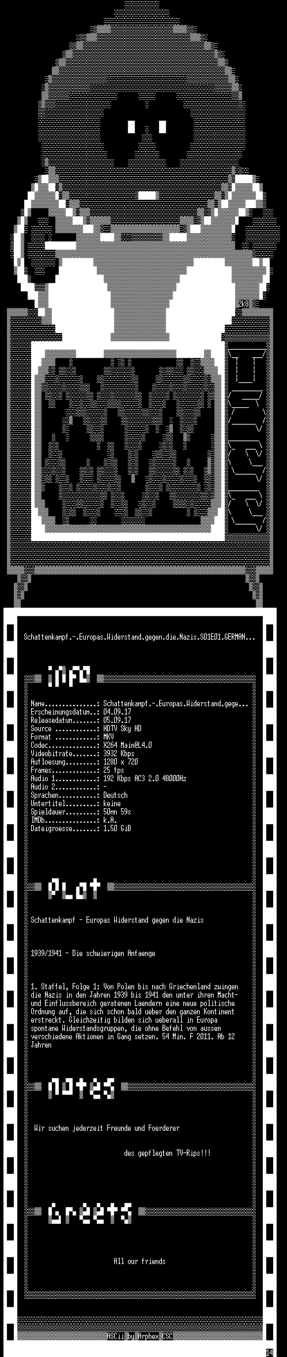 | FiLENAME: | Schattenkampf.-.Europas.Widerstand.gegen.die.Nazis.S01E01.GERMAN.DOKU.720p.HDTV.x264-TSCC.mkv |