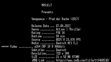 | FiLENAME: | Vengeance.Pfad.der.Vergeltung.German.2017.BDRiP.x264-MOViEiT.mkv |