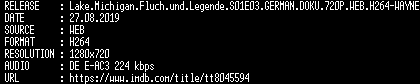 | FiLENAME: | Lake.Michigan.Fluch.und.Legende.S01E03.GERMAN.DOKU.720P.WEB.H264-WAYNE.mkv |