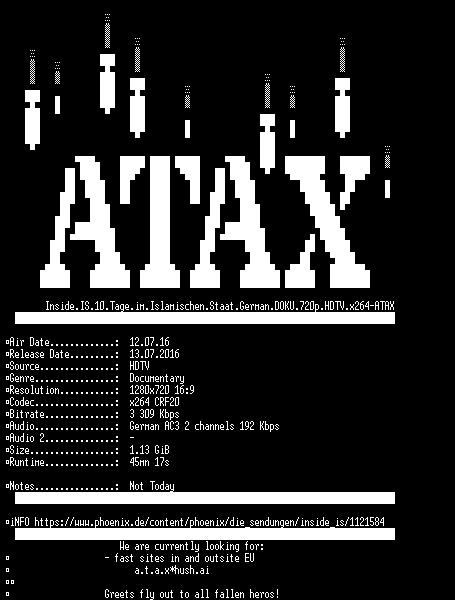 | FiLENAME: | Inside.IS.10.Tage.im.Islamischen.Staat.German.DOKU.720p.HDTV.x264-ATAX.mkv |