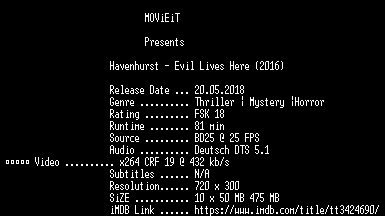 | FiLENAME: | Havenhurst.German.2016.BDRiP.x264-MOViEiT.mkv |
