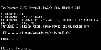 | FiLENAME: | The.Innocents.S01E02.German.DL.WEB.720p.x264.iNTERNAL-BiGiNT.mkv |