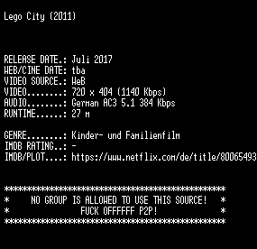 | FiLENAME: | Lego.City.2011.German.WebRip.x264-SLG.mkv |