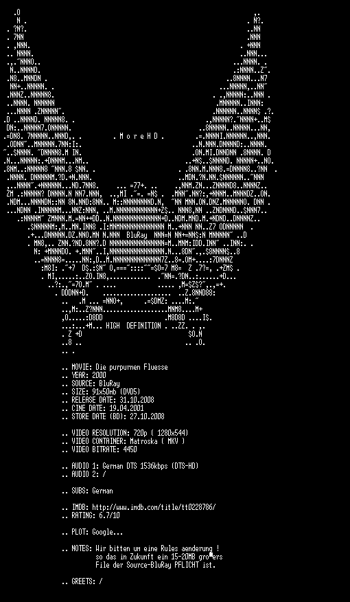 | FiLENAME: | Die purpurnen Fluesse (2000) [GER-dts 720p BD].mkv |