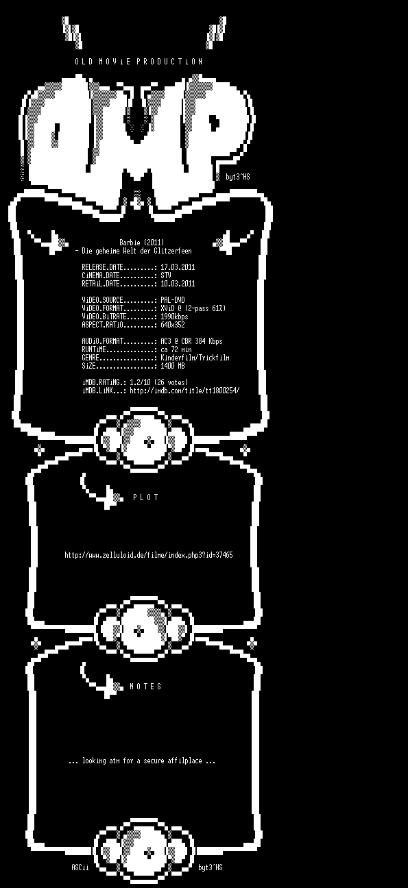 | FiLENAME: | Barbie.Die.geheime.Welt.der.Glitzerfeen.German.2011.AC3.DVDRiP.XViD-OMP.avi |
