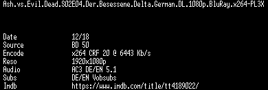 | FiLENAME: | Ash.vs.Evil.Dead.S02E04.Der.Besessene.Delta.German.DL.1080p.BluRay.x264-PL3X.mkv |