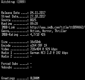 | FiLENAME: | Witchtrap.German.REMASTERED.1989.AC3.BDRip.x264-SPiCY.mkv |