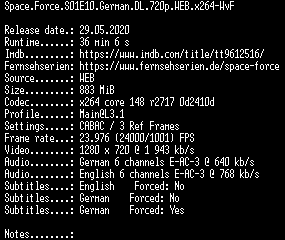 | FiLENAME: | Space.Force.S01E10.German.DL.720p.WEB.x264-WvF.mkv |