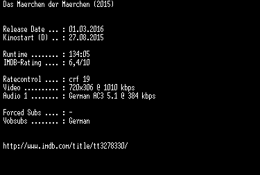 | FiLENAME: | Das.Maerchen.der.Maerchen.German.2015.AC3.BDRiP.x264-EXQUiSiTE.mkv |