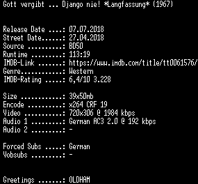 | FiLENAME: | Gott.vergibt.Django.nie.German.REMASTERED.1967.Langfassung.AC3.BDRip.x264-SPiCY.mkv |