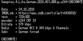 | FiLENAME: | Gangstas.4.Life.German.2018.AC3.BDRip.x264-CHECKMATE.mkv |