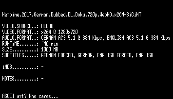 | FiLENAME: | Heroine.2017.German.Dubbed.DL.Doku.720p.WebHD.x264-BiGiNT.mkv |